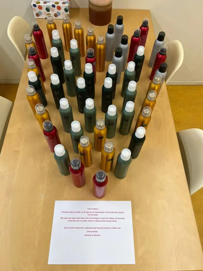 Vandaag – 5 oktober – is de dag van de medewerker in het onderwijs. Die dag mag natuurlijk niet zomaar voorbij gaan. Ieder jaar staat de school hierbij stil, met een kleinigheidje voor alle werknemers! Dit jaar een ontspannen cadeautje wat heel mooi past bij ons speerpunt BALANS.