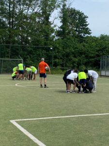 Dinsdag 21 mei hebben de leerlingen tegen elkaar gestreden in ons jaarlijkse voetbaltoernooi! Er waren ongeveer 60 leerlingen die verdeeld waren over 8 (bekende) voetbalteams. Wat was het ongelofelijk spannend! De leerlingen hebben meerdere wedstrijden gespeeld met uiteindelijk de finale tussen Paris Saint-Germain en FC Barcelona. Voordat deze spannende finale gespeeld werd, hebben de aanvoerders van elk team ook nog een wedstrijd tegen de leerkrachten gespeeld (voor iedereen die nieuwsgierig is: de leerkrachten hebben gewonnen).Terug naar de finale van de leerlingen. Na een stand van 2-2 gespeeld te hebben, was het tijd voor penalty’s. Uiteindelijk heeft FC Barcelona het voetbaltoernooi gewonnen! Elke voetballer kreeg zijn eigen gouden medaille, en de leerlingen van dit team zullen de komende weken de wisselbeker om en om in de klas krijgen.